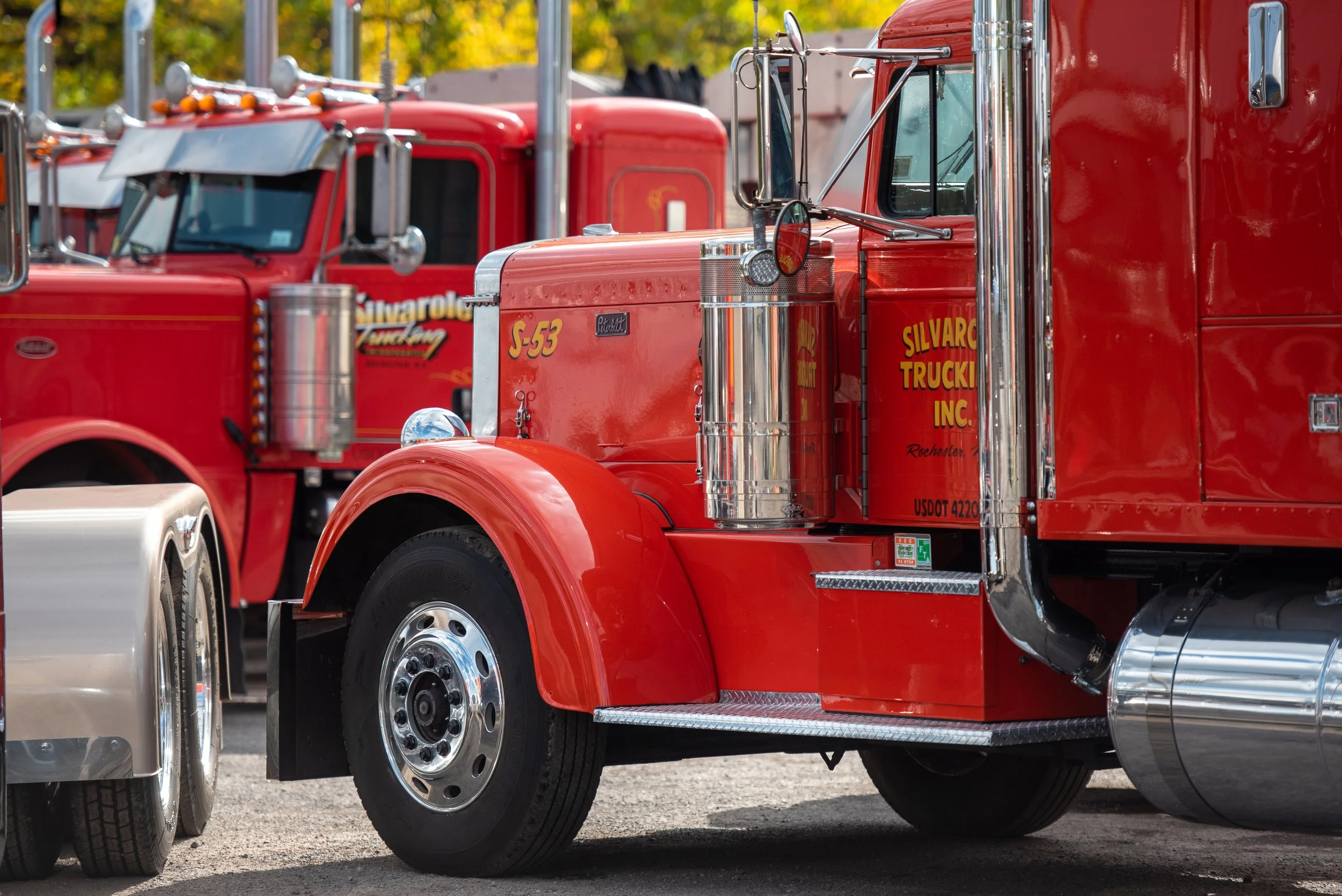Logo of Silvarole Trucking Inc., with a black background, featuring stylized white and red text and design elements.